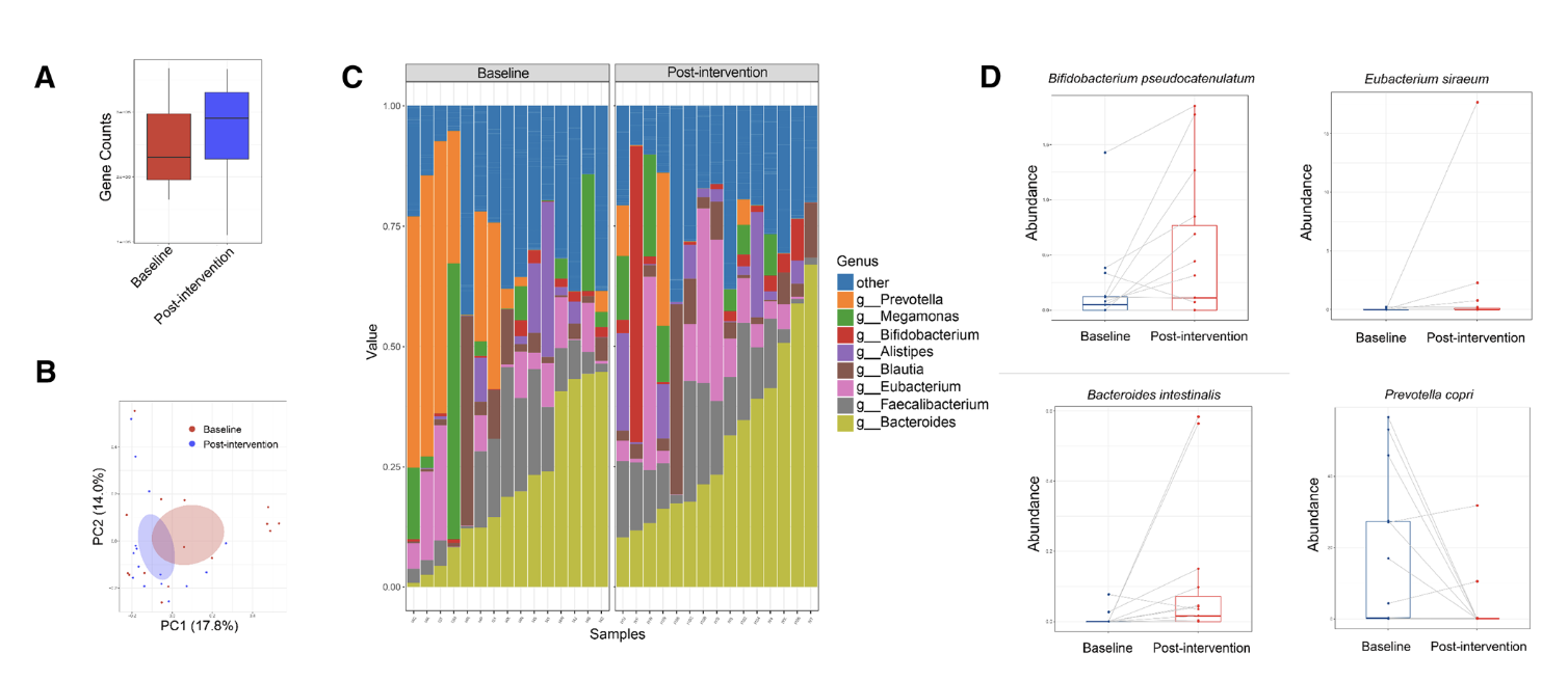 有益菌数量增加:假小链双歧杆菌、肠道拟杆菌、西拉肠球菌等益生菌丰度显著上升,这些细菌能帮助产生短链脂肪酸(SCFA),增强肠道屏障功能;