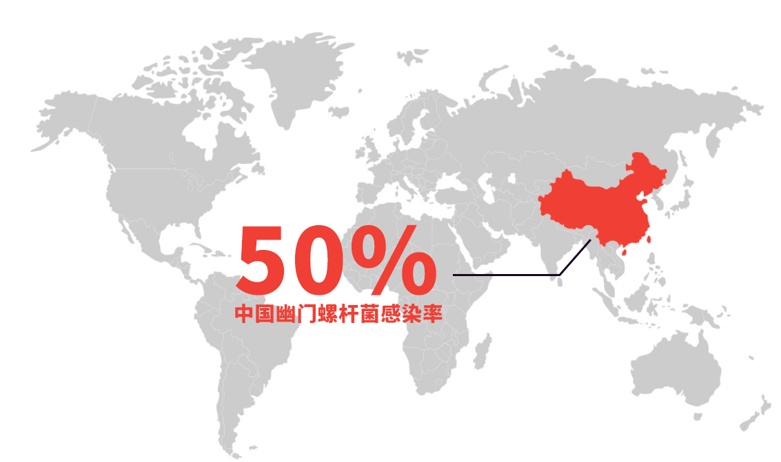 幽门螺杆菌防控白皮书数据显示:我国幽门螺杆菌平均感染率高达50%,不同人群感染率在 35.4%~66.4%之间[1]。